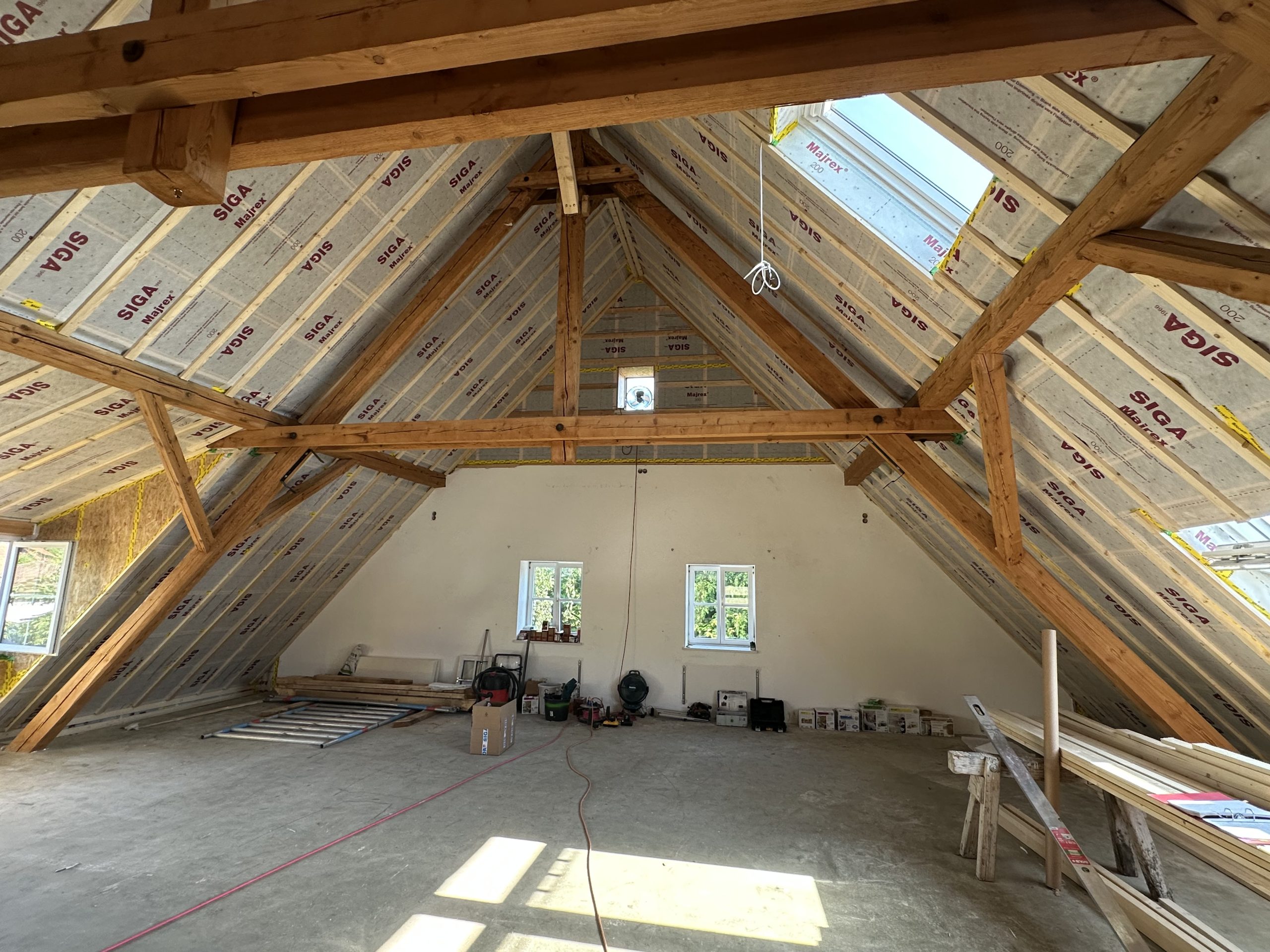 Landwirtschaftliche Bauten, Holzställe und Maschinenhallen gehören dabei ebenso zu den Leistungen wie Gebäudeaufstockungen, sichtbare Dachstühle, energetische Dachsanierungen und Fassadenbau. Der qualitative Anspruch der Zimmerei geht Hand in Hand mit einer wirtschaftlichen Ausführung. Außerdem achten wir bei Baustoffen auf ökologische Lösungsmöglichkeiten, immer getreu dem Motto: „Qualität aus Erfahrung macht alles Schöner“.